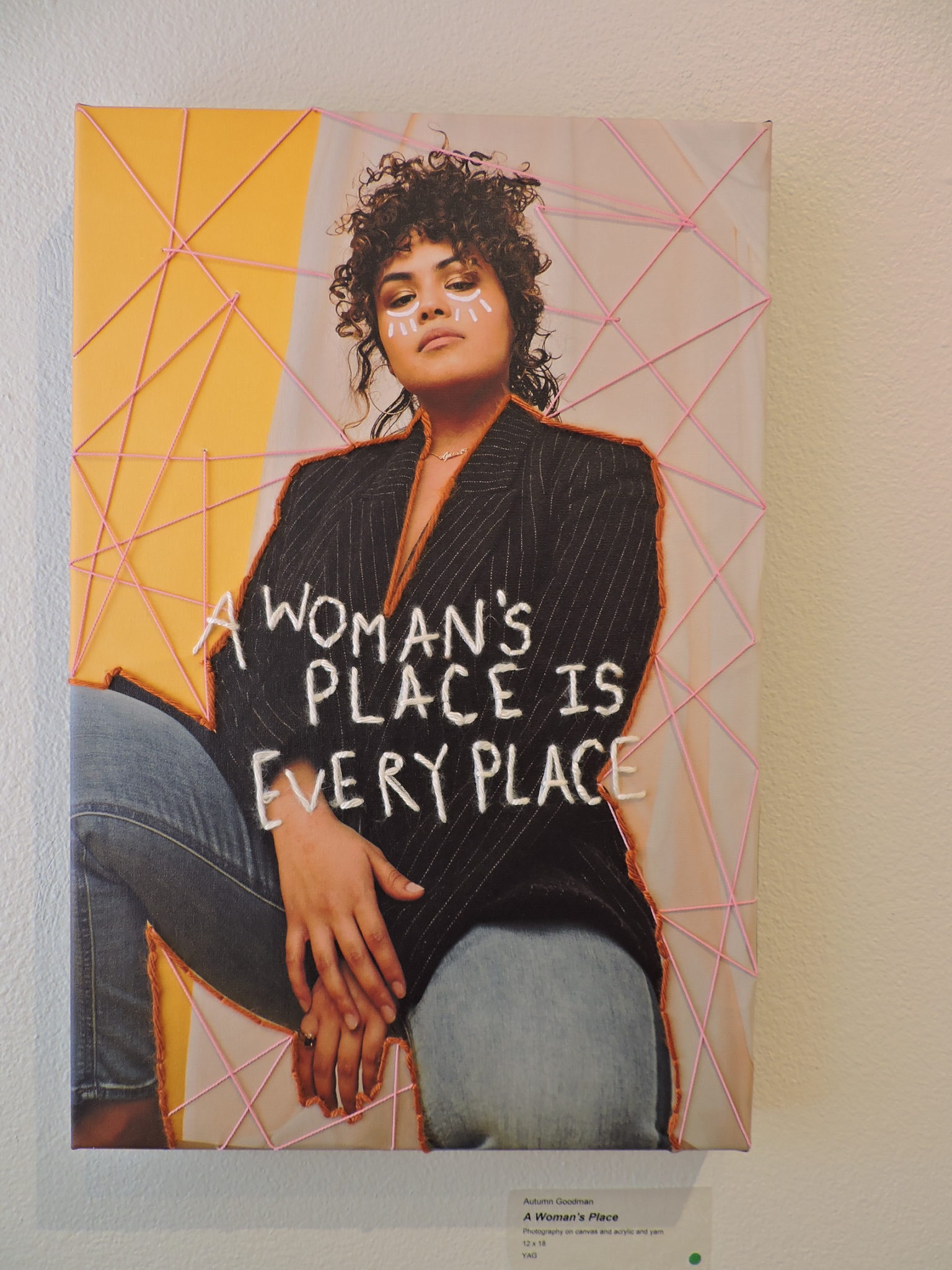 Photography on canvas with acrylic and yarn