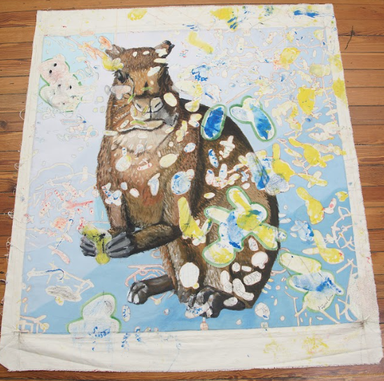 and acrylic on raw canvas – both sides