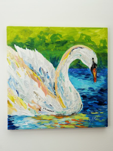 Collage and acrylic on canvas wrap