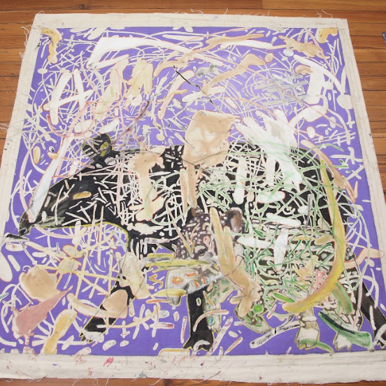 and acrylic on raw canvas – both sides