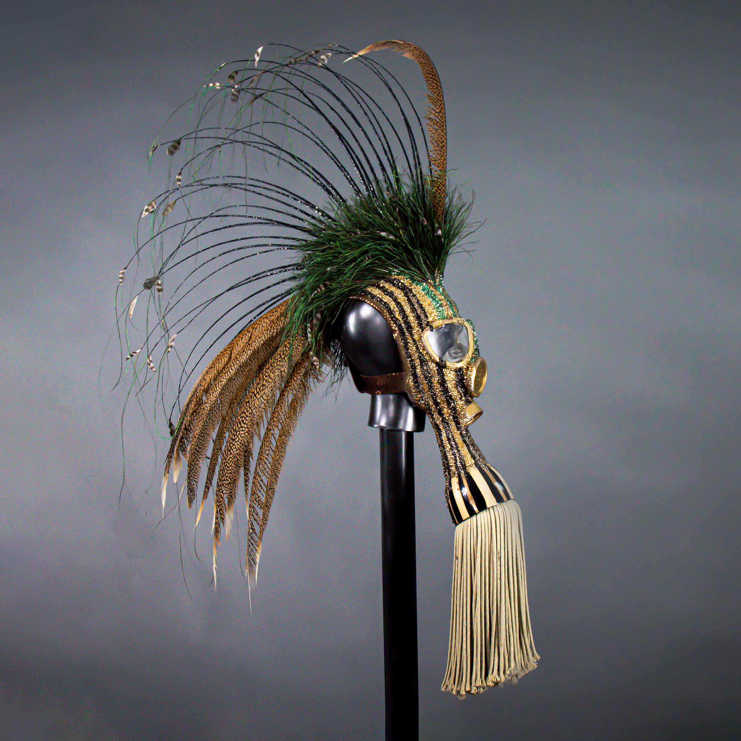 Enamel Paint, Feathers, Leather, Plastic, Quills, Rope,