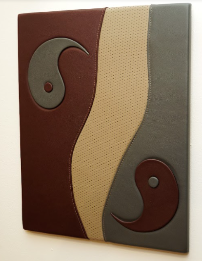Leather on wood panel