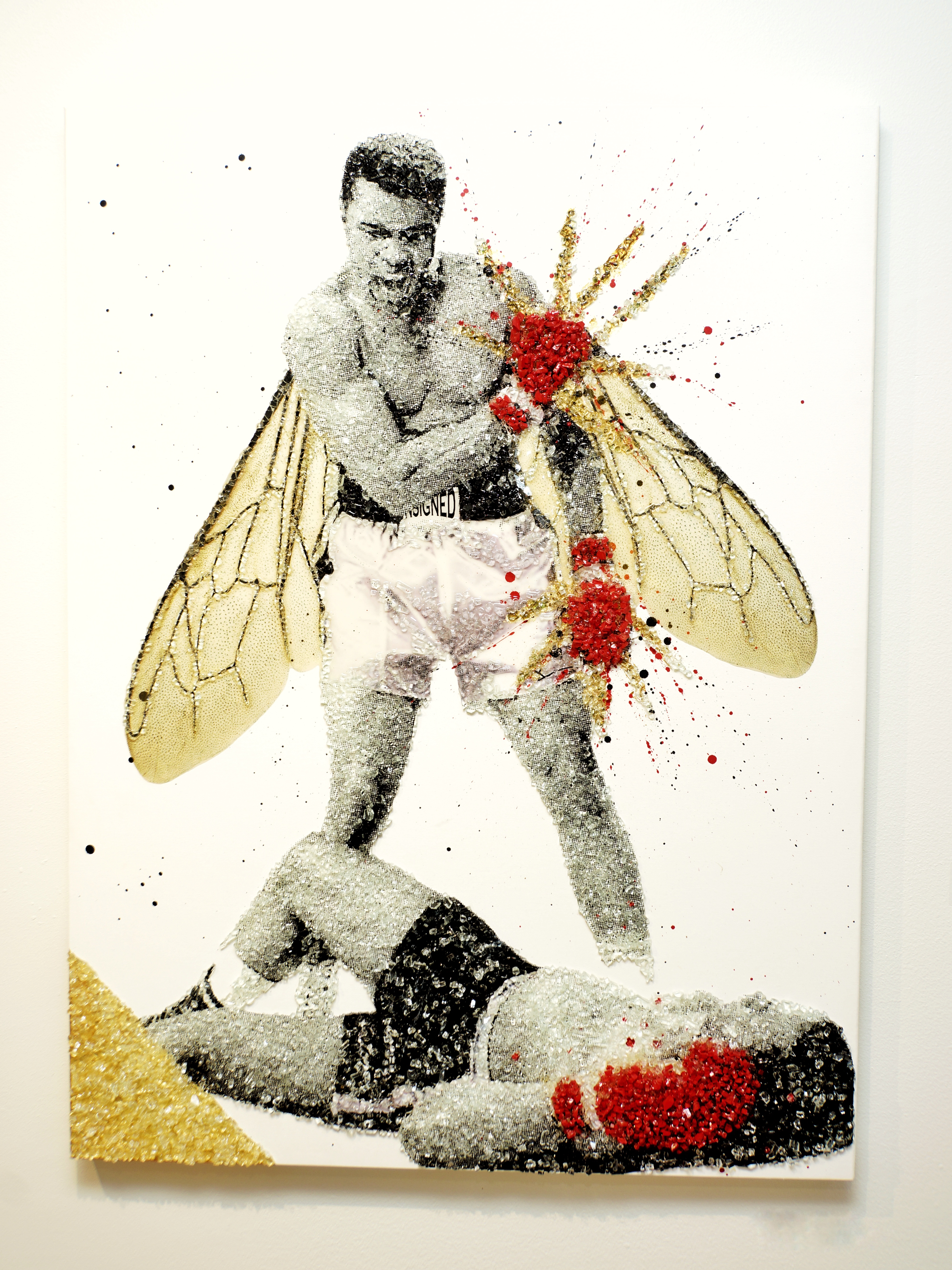 Jbon x Maslow collab “Sting like a bee” Shattered glass / Mixed Media 36” x 48” $3,800