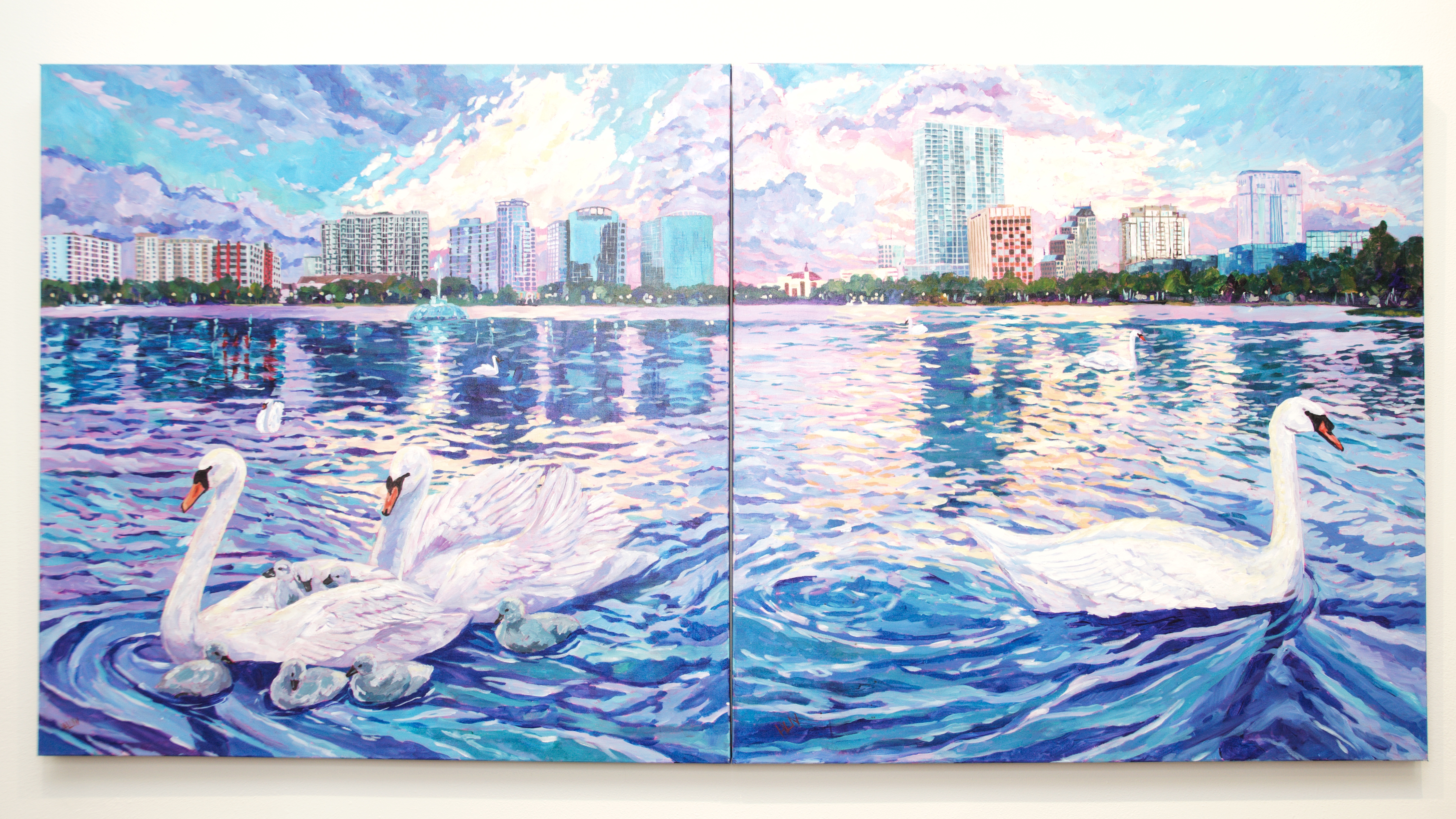 / Swans sunset diptych by Heather Nagy