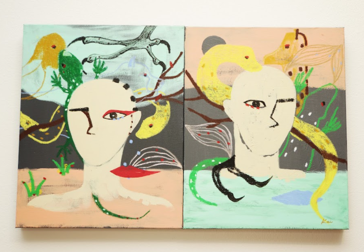 Kai The Garden of Eden: Blame Acrylic, Oil Pastel 16×20 each Two pieces set $1800